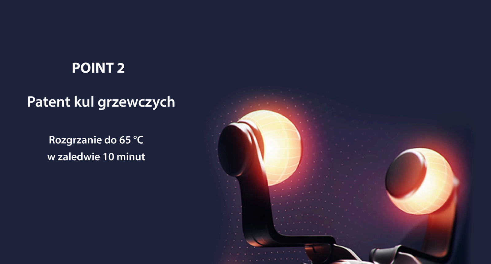 Dzięki opatentowanej technologii podgrzewanych kulek, wewnętrzne elementy grzewcze bezpośrednio się nagrzewają, co pozwala na szybkie osiągnięcie pożądanej temperatury. Precyzyjna konstrukcja elementów grzewczych i obrotowych minimalizuje straty ciepła, a miękki materiał, uwzględniając komfort masażu, osiąga temperaturę do 65°C w zaledwie 10 minut.